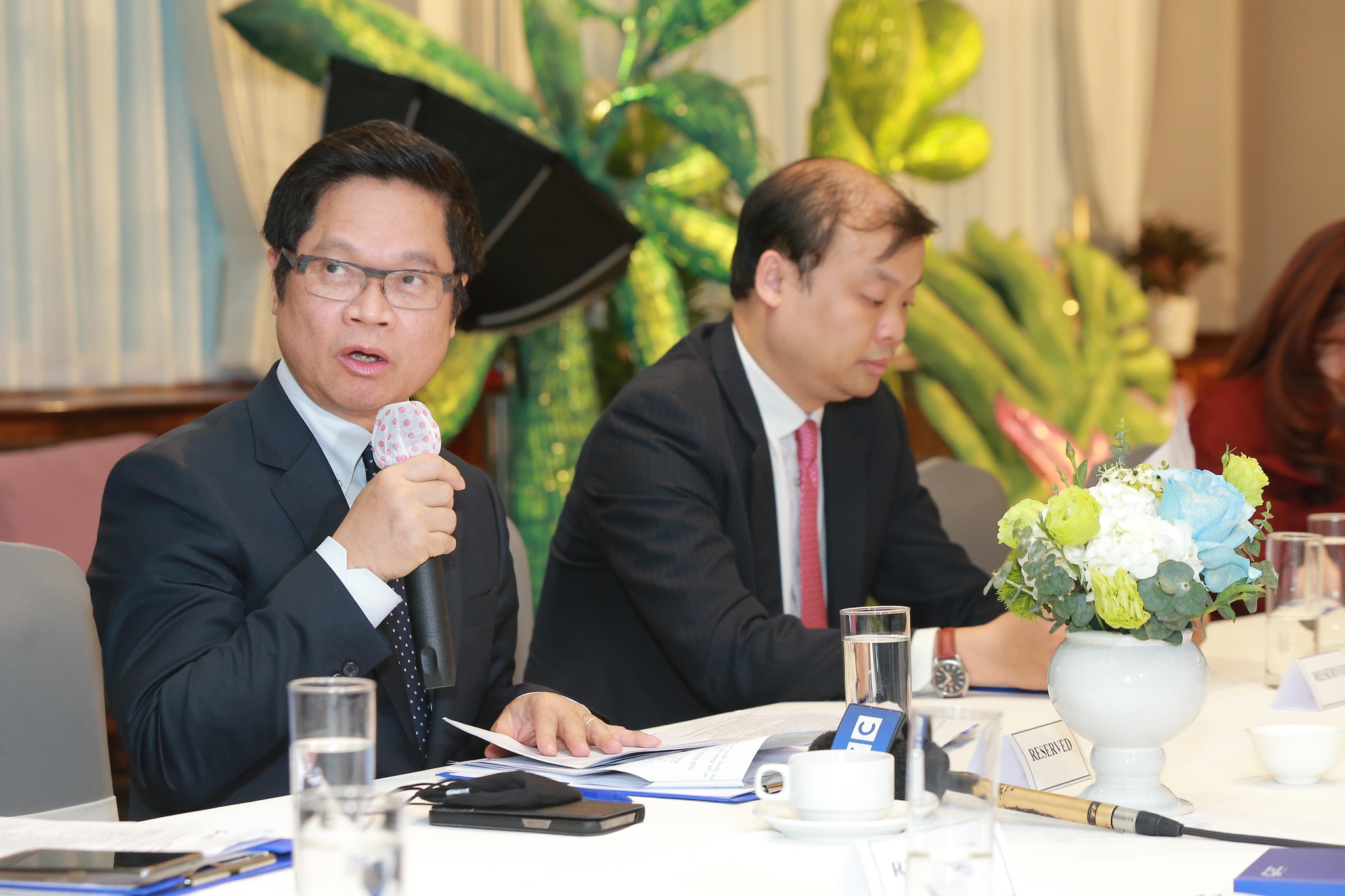 Ông Vũ Tiến Lộc, Đại biểu Quốc hội khóa XV, Ủy viên Ủy ban Kinh tế của Quốc hội, Chủ tịch Trung tâm Trọng tài quốc tế Việt Nam (VIAC) trao đổi tại sự kiện