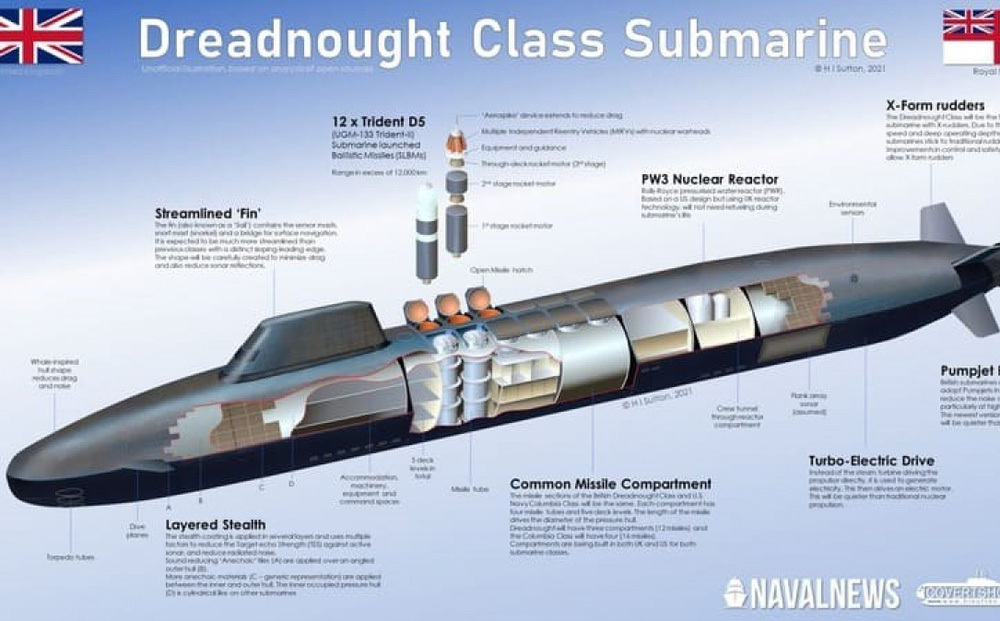 Tàu ngầm lớp Dreadnought chạy bằng năng lượng hạt nhân (SSBN) đảm trách răn đe hạt nhân của Hải quân Hoàng gia Anh từ những năm 2030 hiện đang được đóng, hứa hẹn là chiếc tàu ngầm tàng h́nh nhất từ trước đến nay.