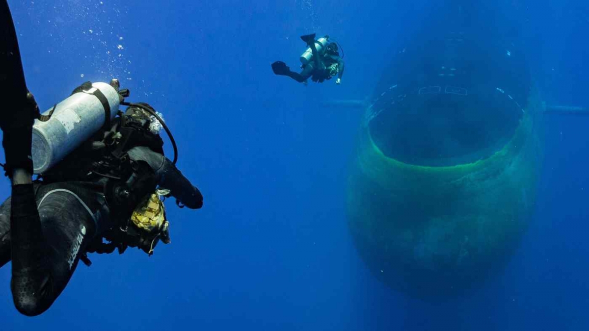 Các thợ lặn của Hải quân Mỹ hoạt động cùng với tàu ngầm hạt nhân USS North Carolina ở ngoài khơi biển Oahu, Hawaii. Ảnh: Hải quân Mỹ