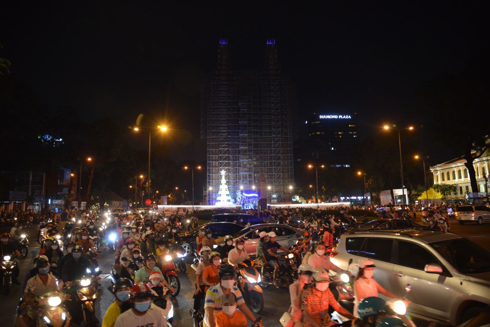 Năm nay, do ảnh hưởng của dịch bệnh COVID-19 nên người dân cũng hạn chế đi chơi trong đêm Giáng sinh. Tuy nhiên, dù người dân ra đường vào đêm Giáng sinh có giảm so với những năm trước, nhưng do lượng xe tập trung tại cùng một điểm quá đông nên các tuyến đường trung tâm vẫn xảy ra tình trạng ùn tắc kéo dài.