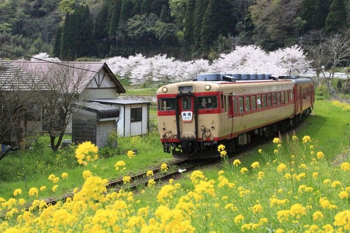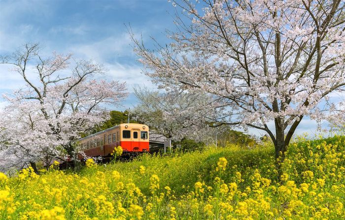Vẻ đẹp của đường sắt Isumiđược tạo nên nhờ sự kết hợp của các loài hoa đang kỳ nở rộ. Hình ảnh đoàn tàu màu vàng chạy giữa ruộng hoa cải nở rộ vào mùa hè hay hàng hoa anh đào phất phơ vào mùa xuântrông giống như một tác phẩm nghệ thuật bằng tranh vậy.