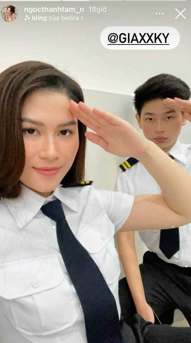 Trong bức ảnh, cả hai cùng diện đồ phi công và làm động tác chào để tạo dáng chụp ảnh. Gia Kỳ cũng đã re-tweet lại bức ảnh này và đăng thêm story làm "phi công" cho Ngọc Thanh Tâm trên chiếc trực thăng mà ekip Ngọc Thanh Tâm set up.