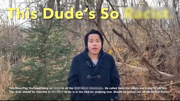 Cụ thể, trên video, cư dân mạng này đã bày tỏ sự bức xúc đối với Khoa Pug: “Anh ta là kẻ phân biệt chủng tộc. Đây là YouTuber Khoa Pug, người đang thể hiện sự kỳ thị chủng tộc đối với người da đen ở Mỹ. Anh ta gọi họ là sát thủ và đang truy sát anh ta. Điều này cần được báo cáo lên FBI. Khoa Pug đang du học ở Mỹ, nên đuổi anh ta khỏi đây ngay”.
