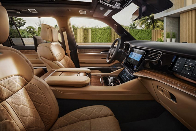 Những trang bị đáng chú ý khác của Jeep Grand Wagoneer 2022 bao gồm ghế trước chỉnh điện 24 hướng với tính năng nhớ vị trí và mát-xa. Trong khi đó, Jeep Wagoneer 2022 chỉ có ghế trước chỉnh điện 12 hướng. Ghế sưởi ấm, làm mát, vô lăng sưởi và bàn đạp có thể chỉnh được là trang bị tùy chọn cho xe.