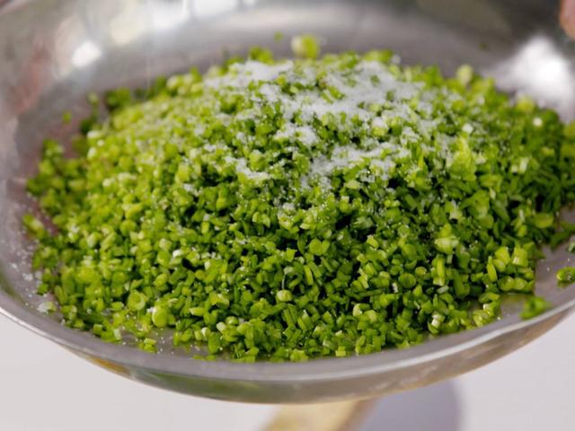Hẹ rửa sạch, cắt vụn, trộn với gia vị.
