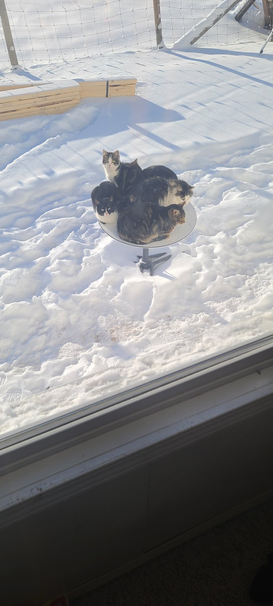 Cụ thể trên 1 bài đăng Twitter vào đúng ngày đầu tiên của năm mới, người dùng có tên Aaron Taylor đã chụp lại được hình ảnh 5 con mèo nằm chen chúc nhau trên 1 bộ chảo vệ tinh của Starlink. Trong khi đó, dù nhiệt độ ngoài trời dường như là khá thấp và tuyết vẫn lấp đầy trên mặt đất, nhưng nhiệt tỏa ra từ chảo thu sóng dường như đã đủ sưởi ấm cho các “boss” và khiến chúng tiếp tục nằm lỳ ở đó.