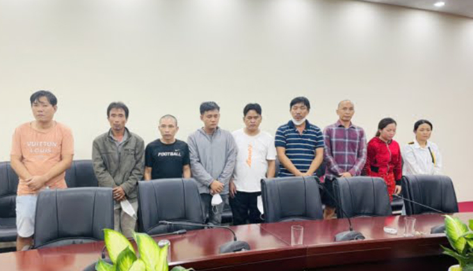 Minh và các đồng phạm tại cơ quan điều tra. Ảnh: Công an cung cấp