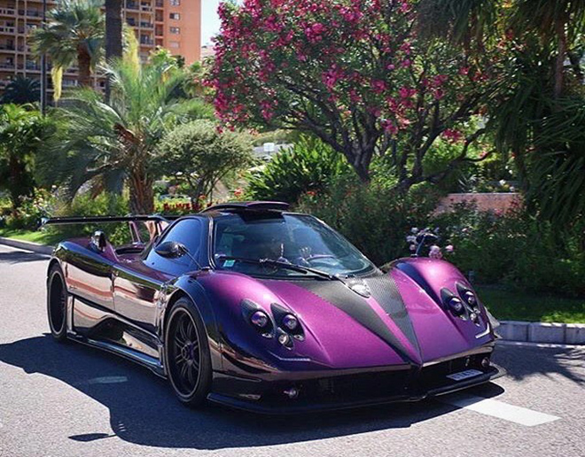 Chiếc Pagani Zonda 760 LH Zonda có màu sơn ngoại thất ánh tím, nội thất cực sang chảnh tích hợp nhiều công nghệ hiện đại. Siêu xe này mất chưa đầy 3 giây để tăng tốc từ 0-100 km/h trước khi đạt tốc độ tối đa 350 km/h.