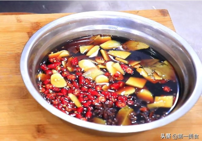 Bước 4: Sơ chế một số nguyên liệu sau: Ớt cắt nhỏ, tỏi và gừng thái thành lát mỏng, sau đó đổ vào bát nước đã nguội.