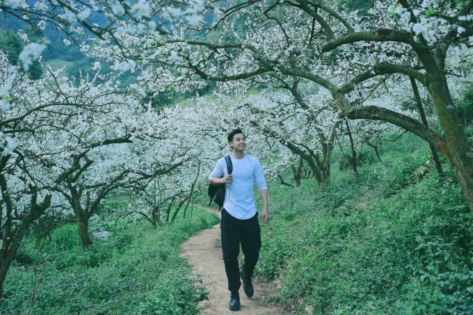 Tản bộ giữa rừng mận nở trắng xóa ở thung lũng Mu Náu. Ảnh: Quang Kiên
