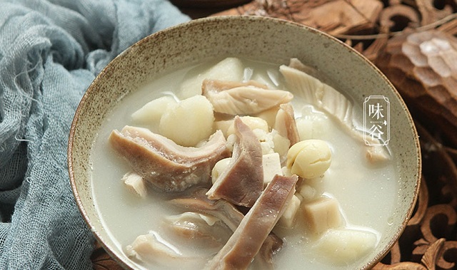 Mùa lạnh, uống canh dạ dày hầm sẽ giúp xua tan cái lạnh, làm giảm chứng lạnh tay chân. Những nguyên liệu như củ mài, hạt sen, ý dĩ, bạch phục linh đều là những loại dược liệu tốt cho sức khỏe, có công dụng bổ tỳ vị, tăng cường tiêu hóa, điều hòa sức khỏe. Bên cạnh đó, dạ dày được hầm chín tới vẫn giữ được độ giòn sần sật ngon miệng, nước canh trắng trong đẹp mắt và thơm ngon, thanh ngọt, là một món ăn được cả nhà ưa thích.