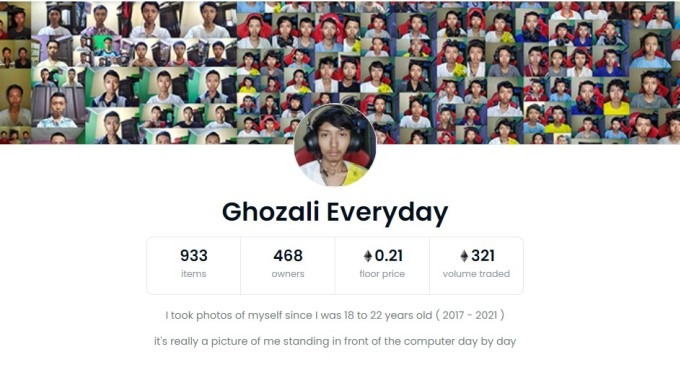 Ghozalo trở thành hiện tượng trên Internet vài ngày gần đây, sau khi quyết định biến 933 ảnh selfie của mình thành NFT và đưa lên sàn giao dịch. Đây là những bức ảnh được chụp trong bốn năm, từ 18 tuổi đến 22 tuổi. Ghozalo cho biết ban đầu anh dự định chụp để tạo một video tua nhanh về bản thân và đăng ở trường học. Nhưng sau khi tìm hiểu về blockchain, chàng sinh viên đại học Indonesia quyết định biến chúng thành NFT và bán.
