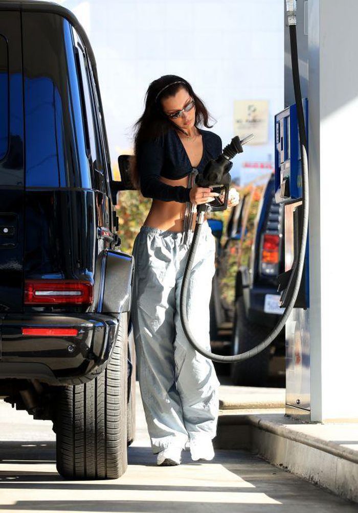 Bella Hadid phô tối đa lợi thế hình thể thon nuột. Người đẹp sinh năm 1996 sở hữu chiều cao 1m74 và số đo 3 vòng hoàn hảo: 86-61-86 (cm).
