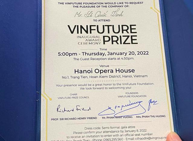Mới đây mạng xã hội đã xuất hiện hình ảnh chữ ký viết tay của Tỷ phú Phạm Nhật Vượng và vợ ông, bà Phạm Thu Hương. Hai chữ ký này là phần cuối thiếp mời tới dự Lễ trao giải thưởng VinFuture, được tổ chức tối 20/1 tại Nhà hát lớn Hà Nội.