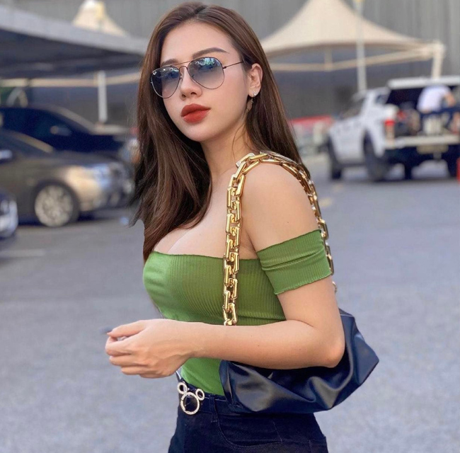 Cô chuộng mặc các thiết kế tôn được hình thể đẹp, nhất là vòng 1 nở nang.