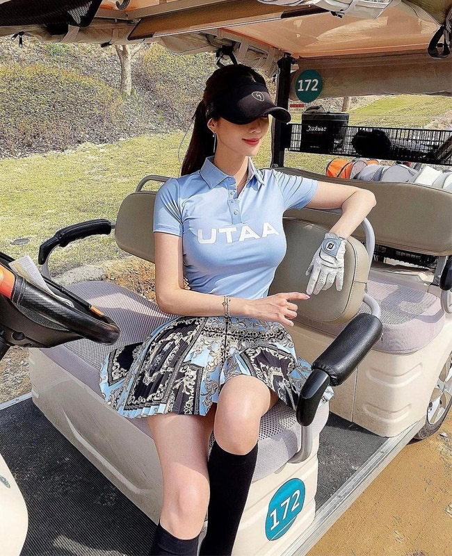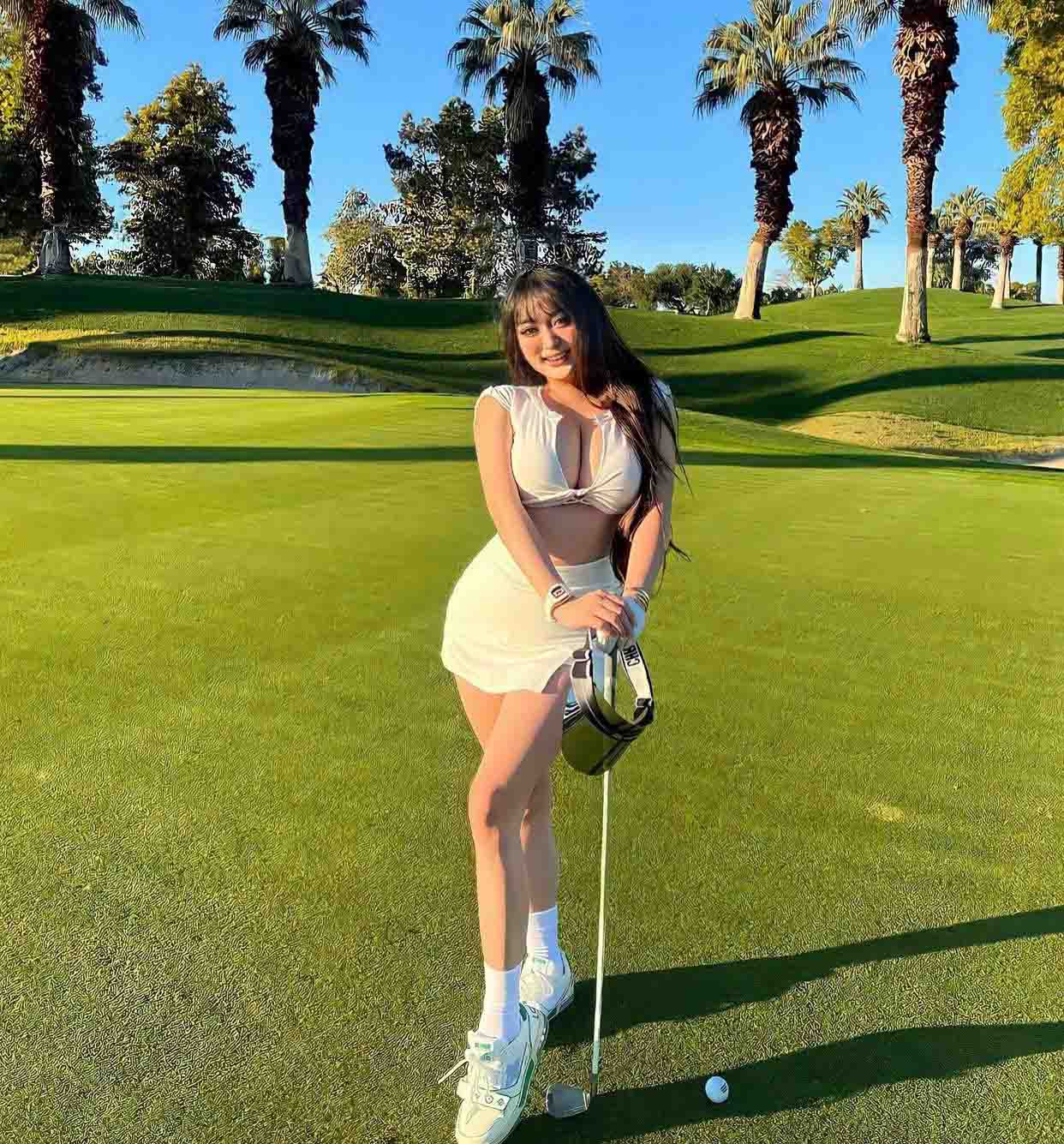 Mới đây, cô nàng tiếp tục "gây sốt" mạng khi đăng tải những hình ảnh diện trang phục "dễ bị cấm" trên sân golf. Không chỉ mặc chân váy ngắn, người đẹp còn diện áo croptop ngắn, hở, tôn vòng 1 đầy đặn. Bộ trang phục tuy đẹp nhưng bị đánh giá không phù hợp với bộ môn thể thao thượng lưu như golf vì từng đã từng có quy định về quần hoặc váy không được cao hơn đầu gối quá 6 inch (tương đương 15.24cm) và áo thun kín đáo, chất liệu co giãn.