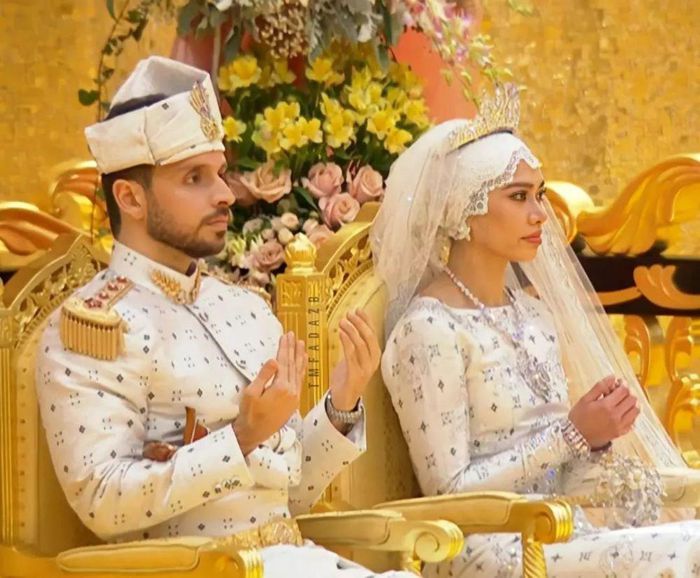 Công chúa Brunei cùng phò mã trong diện mạo "dát vàng". Như nhiều anh chị em khác, Công chúa Fadzilah Lubabul cũng có đám cưới hoành tráng và xa hoa. Ảnh: Newsdelivers.