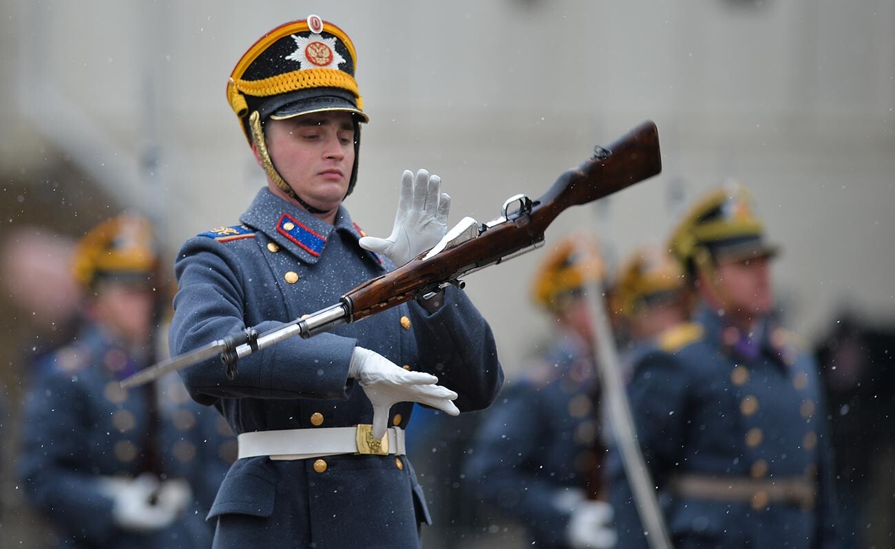 Trung đoàn sinh hoạt và huấn luyện bên trong các bức tường của Điện Kremlin. Thời gian tập luyện bắt đầu 6 giờ sáng.