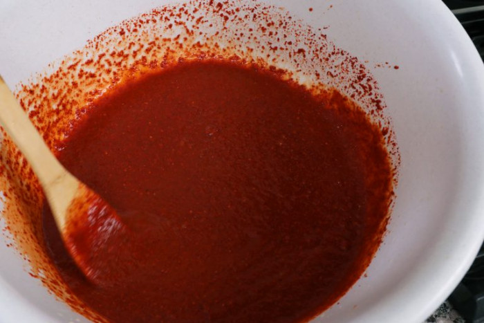 Bước 6: Múc hỗn hợp ở bước 4 vào bát nước mắm ngâm, thêm ớt bột và trộn đều. Để hỗn hợp nghỉ trong vòng 30 phút.