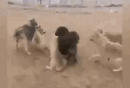 Khi đối đầu với cả đàn chó sói để tranh giành thức ăn, chó ngao vẫn cho thấy được sức mạnh oai vệ của mình. Chó sói vốn không sợ cả gấu nhưng lần này cũng phải lép vế trước đối thủ nặng kí này.