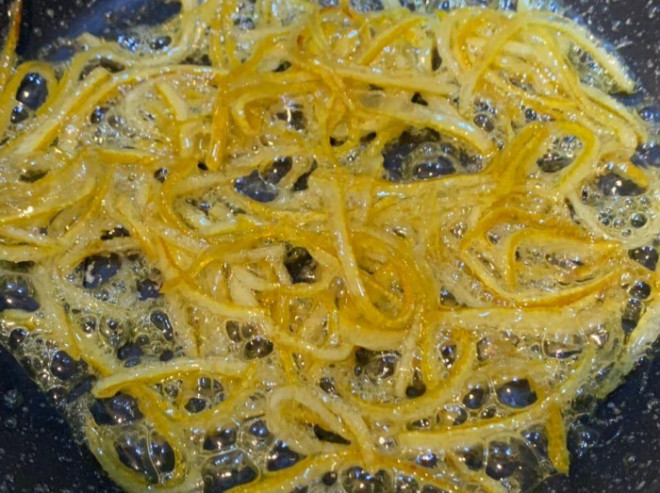 + Khi đã luộc xong rửa lại với nước sạch và nếm lại, nếu vỏ bưởi có vị the và đắng nhẹ là hoàn thành.
