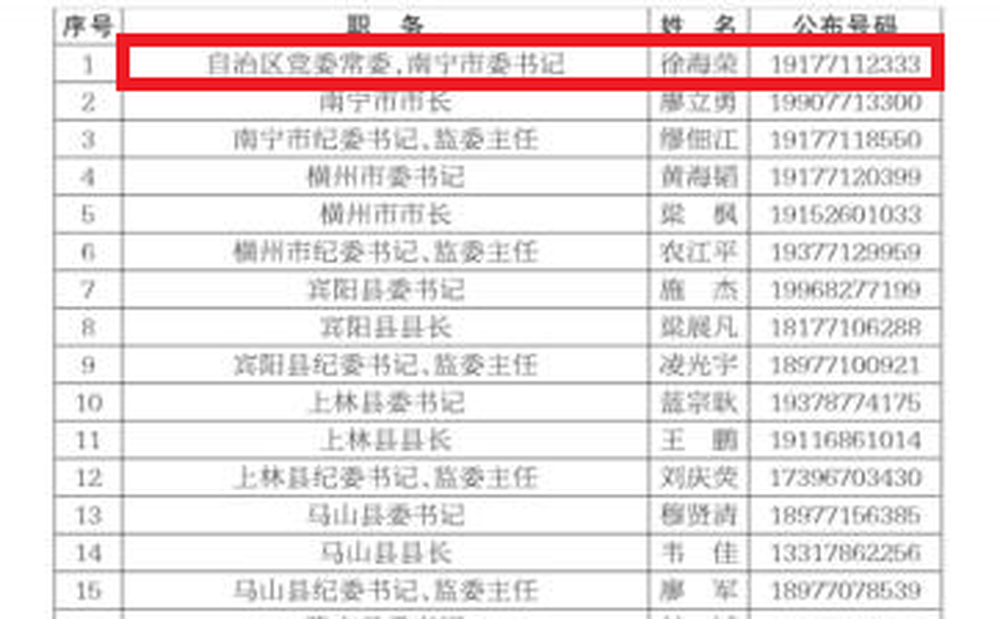 Ngày 7/2, ngày làm việc đầu tiên sau Tết Nguyên đán 2022, thành phố Nam Ninh, tỉnh Quảng Tây, Trung Quốc đã công bố số điện thoại cá nhân của các lãnh đạo địa phương, bao gồm Bí thư thành ủy và Bí thư Ban Kiểm tra Kỷ luật địa phương.