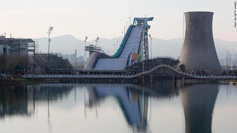 Phía sau nơi các vận động viên trượt tuyết tranh tài có các tòa tháp dạng ống khói cao 60 mét. Trong quá khứ, nơi này từng là một nhà máy thép, một trong những nguyên nhân khiến thủ đô Bắc Kinh rơi vào cảnh ô nhiễm trầm trọng.