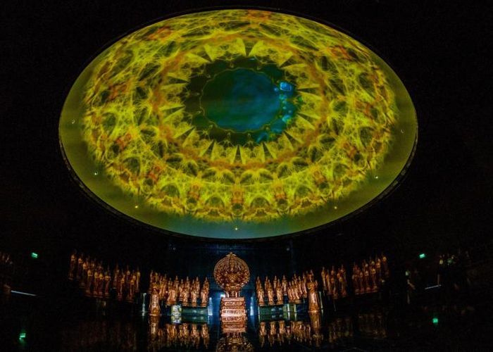 Bên dưới tượng Phật Bà Tây Tây Bổ Đà Sơn là một ngôi chùa cực kỳ rộng lớn, trần ngôi chùa là toàn bộ cảnh quang xung quanh núi Bà Đen từ góc nhìn trên cao được dựng bằng kỹ xảo 8D, hình ảnh núi non, sóng biển, hào quang,...