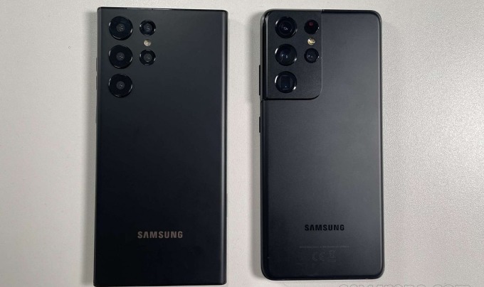 Galaxy S22 Ultra (bên trái) lớn hơn S21 Ultra. Ảnh: GSMArena