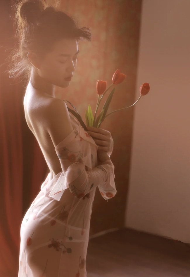Người đẹp Trung Quốc diện váy "ướt nước" chụp hình theo phong cách "ngây thơ gợi tình", phô diễn từng đường nét cơ thể.