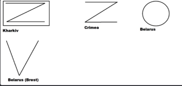 Các chuyên gia cho biết chúng biểu thị các quân đoàn hoặc quân quân khu. Chẳng hạn Z trong ô vuông là thuộc quân khu (quân đoàn) đánh Kharkov. Z lớn là thuộc quân khu hoặc quân đoàn Zapad (Crimea)