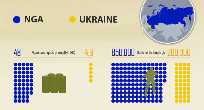Tương quan lực lượng Nga - Ukraine. Bấm vào hình để xem chi tiết.