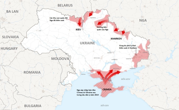 Các mũi Nga tiến quân vào Ukraine. Đồ họa: NY Times. Bấm vào hình để xem chi tiết.