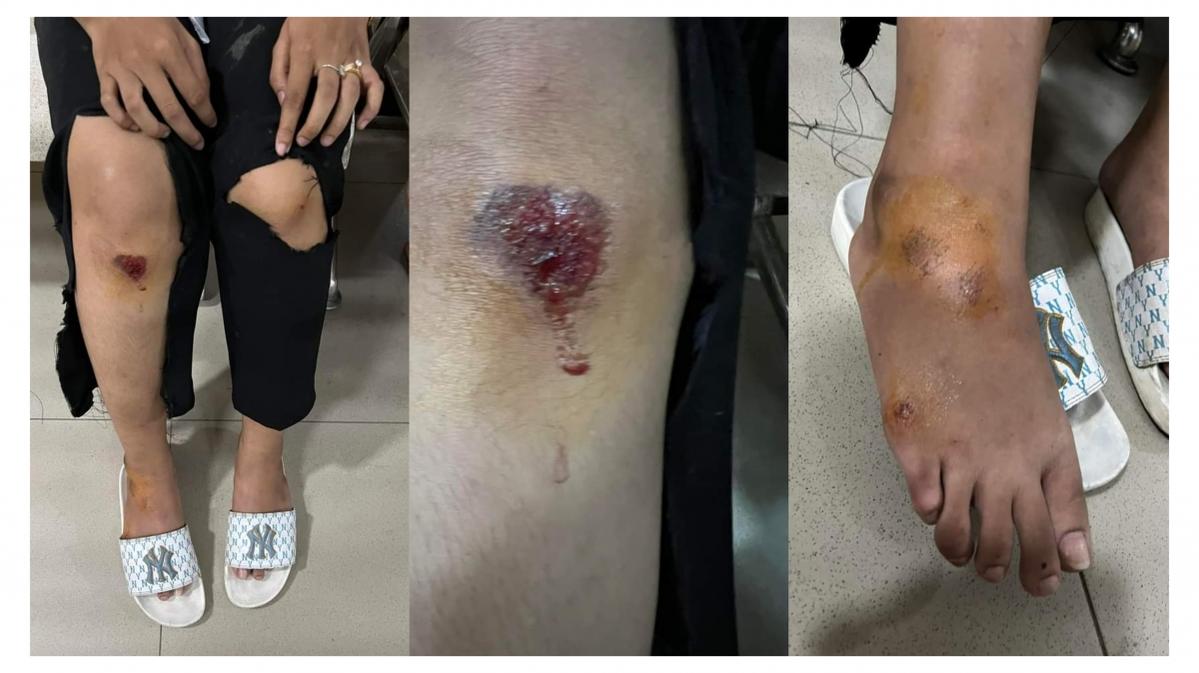 Hình ảnh em B.N bị chấn thương phần mềm ở vùng tay, chân. (Ảnh: Thanh Chương)