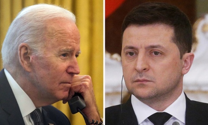 Tổng thống Mỹ Joe Biden (trái) và người đồng cấp Ukraine Volodymyr Zelensky. Ảnh: AFP/Reuters.