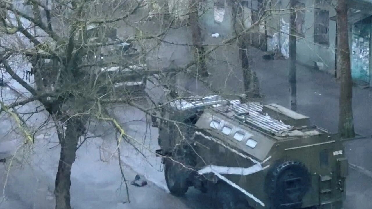 Xe quân sự và xe tăng của Nga trên đường phố Kherson, Ukraina, ngày 01/03/2022. via REUTERS - VIDEO OBTAINED BY REUTERS