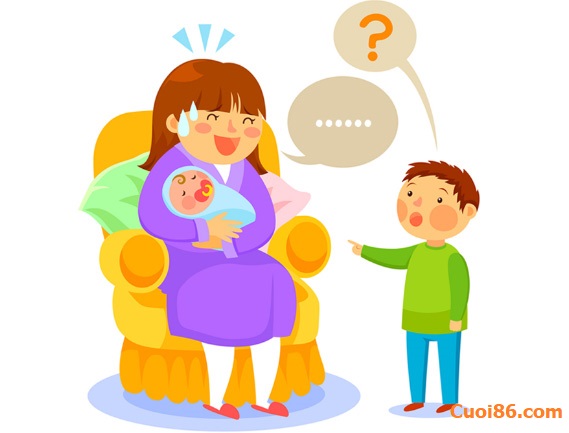 – Còn trẻ con thì được sinh ra bằng rốn!.