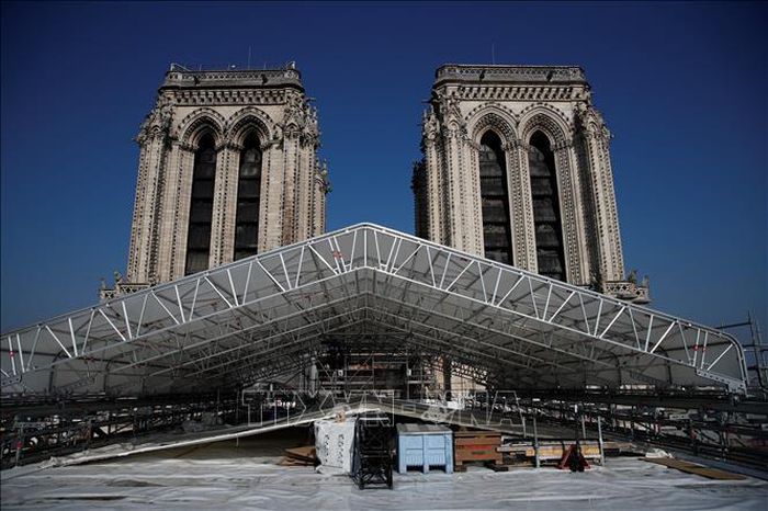 Nhà thờ Đức Bà tại Paris, Pháp trong quá trình tu sửa ngày 15/4/2021. Ảnh tư liệu: AFP/TTXVN