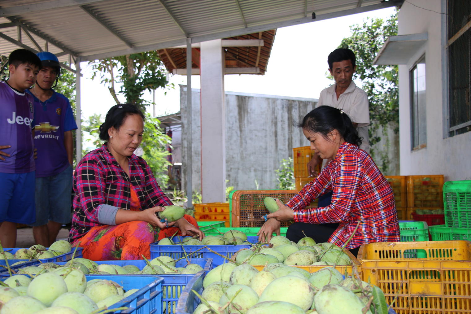 Nhà vườn tỉnh Đồng Tháp lựa xoài sau khi thu hoạch tại vườn. Ảnh: Ngọc Tài
