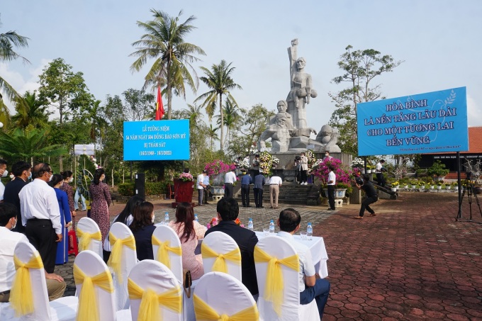 Lãnh đạo tỉnh cùng người dân, các nạn nhân dâng hương trước tượng đài Sơn Mỹ, ở khu chứng tích Sơn Mỹ.