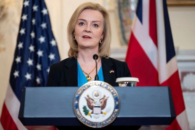 Ngoại trưởng Anh Liz Truss trả lời họp báo ngày 9/3 trong chuyến công tác tại Washington, Mỹ. Ảnh: Reuters.