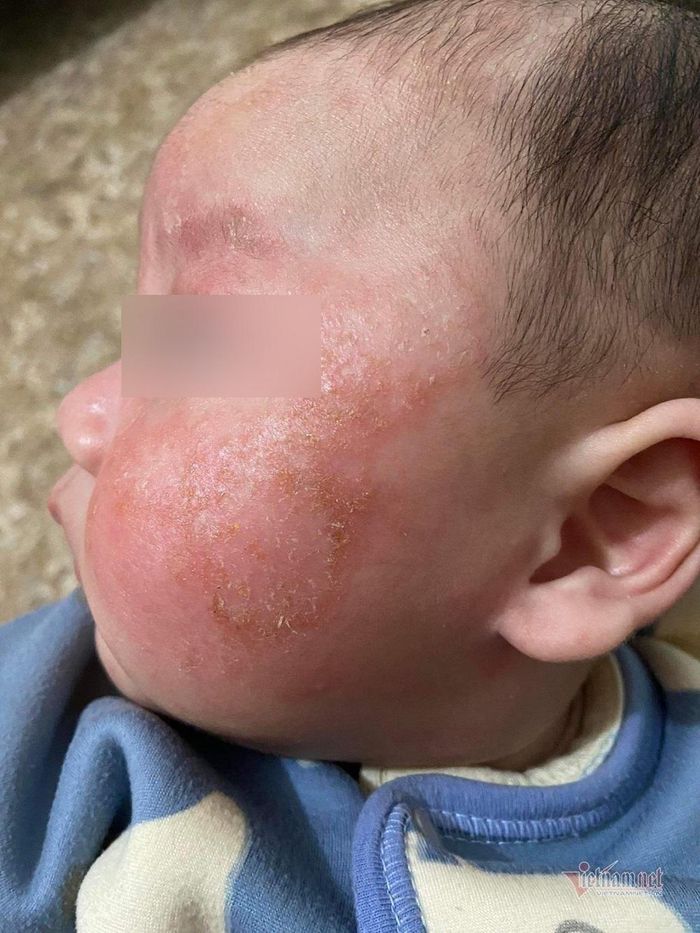 Bé trai 4 tháng tuổi (Hà Nội) mắc Covid-19 được khoảng 1 tuần thì đột ngột xuất hiện rất nhiều mụn nước trên da, da khô, đóng vẩy nặng nề.
