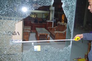 Theo trình báo của gia đình chị L.T.T.H, khoảng 2h25 ngày 16/3, khi mọi người trong gia đình chị này đang ngủ bỗng nghe thấy 2 tiếng nổ lớn và tiếng đập phá cửa. Xuống kiểm tra, người nhà chị L.T.T.H phát hiện cửa kính trước nhà bị vỡ và có nhiều mảnh kim loại ở dưới nền. Nghi ngờ có đối tượng sử dụng súng bắn vào nhà mình, gia đình chị L.T.T.H đã trình báo cho lực lượng công an.