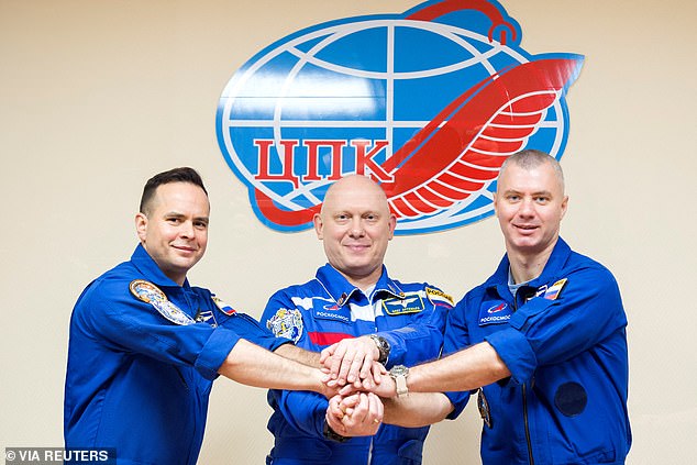 Đó là các phi hành gia Nga Pyotr Dubrov và Anton Shkaplerov, và phi hành gia NASA Mark Vande Hei - người sẽ xác lập kỷ lục sống lâu nhất trong không gian của NASA vào thời điểm ông trở lại Kazakhstan trên một con tàu Soyuz.