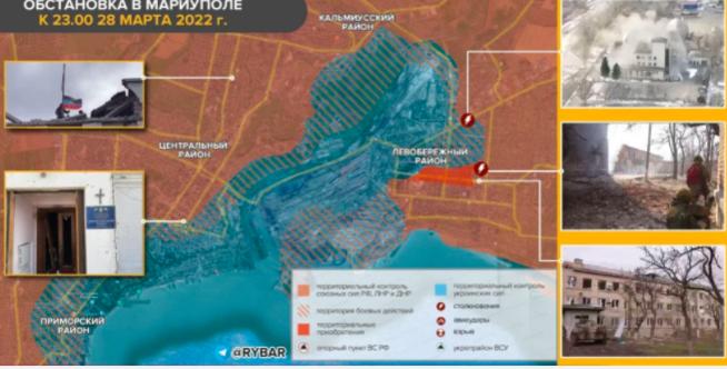 Các lực lượng thuộc Cộng hòa nhân dân Donetsk (DPR) tự xưng, dưới sự hỗ trợ của các binh sĩ Nga đã bao vây thành phố cảng Mariupol, kiểm soát được ngoại vi, bao gồm cả sân bay, hiện đang tiến hành truy quét những tay súng Azov còn lại.