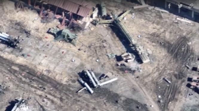 Video được quay từ flycam và lực lượng tại hiện trường cho thấy nhiều nhà chứa, hàng loạt xe chở đạn kiêm bệ phóng với các ống chứa tên lửa hư hỏng hoàn toàn. Một thiết bị dường như là dàn nâng radar cũng nằm trong số khí tài bị phá hủy trong cuộc tập kích.