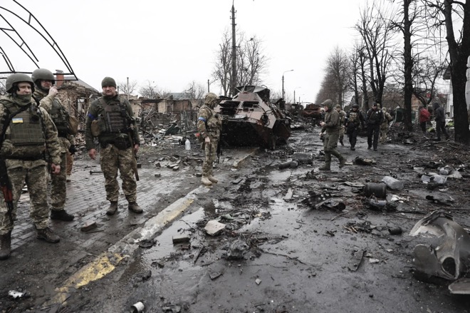 Khung cảnh tan hoang ở thị trấn Bucha.