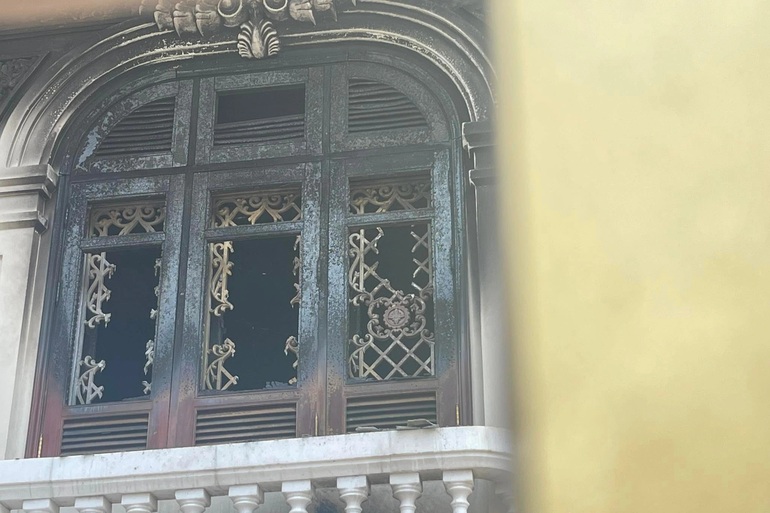 Ban công, vòm cửa của những căn phòng bị lửa cháy lan (Ảnh: Đ.X.).