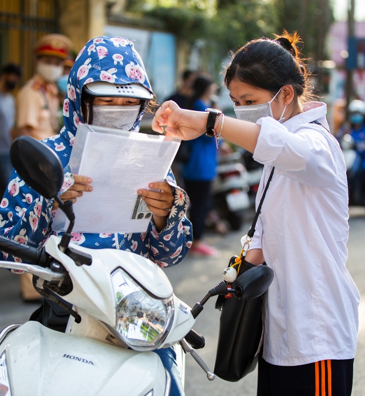 Phụ huynh cùng con kiểm tra lại giấy tờ trước một kỳ thi ở Hà Nội năm 2020. Ảnh: Tùng Đinh