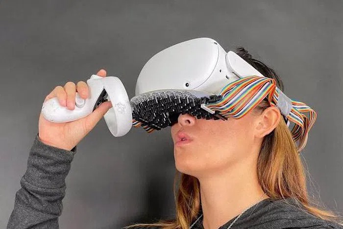 Các nhà khoa học của Đại học Carnegie Mellon ở Pennsylvania đã tiết lộ một thiết bị đeo thực tế ảo (VR) mới giúp mang lại các cảm giác chạm ở môi, răng và lưỡi, mô phỏng một nụ hôn từ xa. Điều đặc biệt là thiết bị không bổ sung bất kỳ phần cứng nào tiếp xúc với khuôn mặt của người đeo, nhưng vẫn tái tạo những cảm giác xung quanh vùng miệng giống như thật.